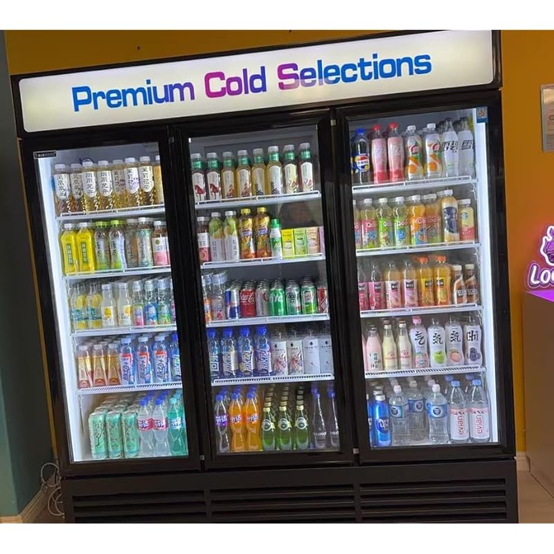 - Digital Temperature Display&Customized Light Box- The digital temperature display and controls make monitoring and adjusting the temperature from 2.8 to 8.3 °C (or 37 to 47°F) simple. The picture of the light box can be customized, you can customize the pattern and logo according to your business or life needs, and the built-in LED light can show your products better, easy for you to select your favorite chilled drink at night.