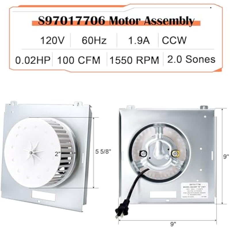 - ► Efficient Performance – Our broan-nutone s97017706 ventilation fan motor assembly adopts a brand new design, which reducing the noise during fan operation. The 1550RPM speed enables the motor to reach 100CFM, increasing the efficiency of indoor and outdoor air exchange. We have a professional after-sales service team and a professional technical manufacturing team.