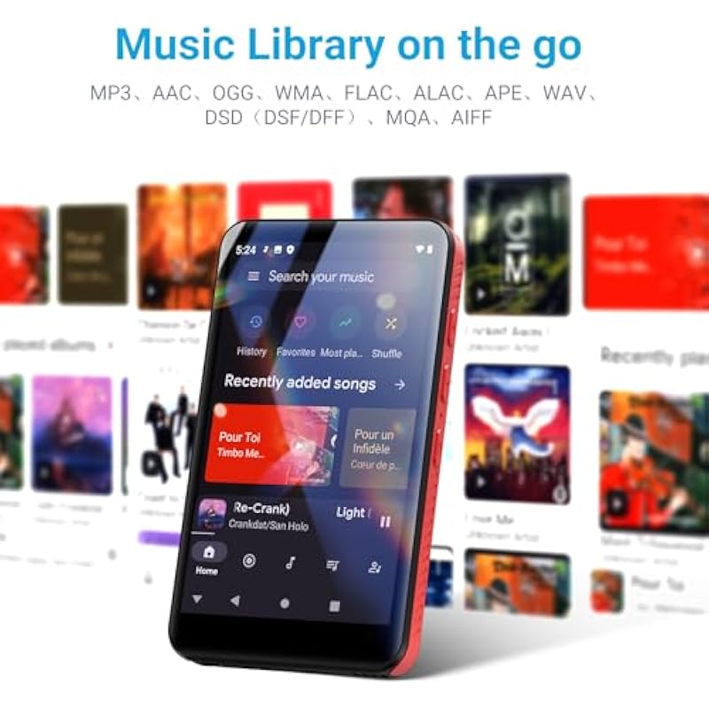 - 【Multifunctional MP3 Music Player】MECHEN X55 perfectly combines local music and streaming music. It is an MP3 music player with Bluetooth and WiFi. The device is pre-installed with the most popular online music applications, including Spotify, Amazon Music, Oto Music, Audible, VLC Music and more.