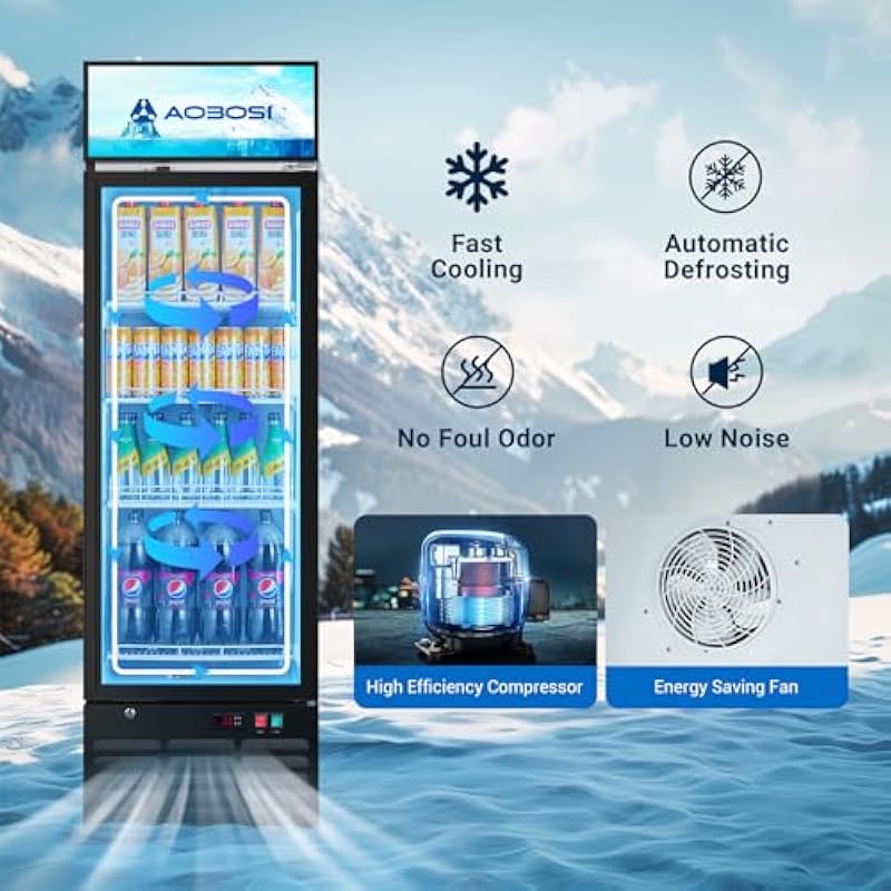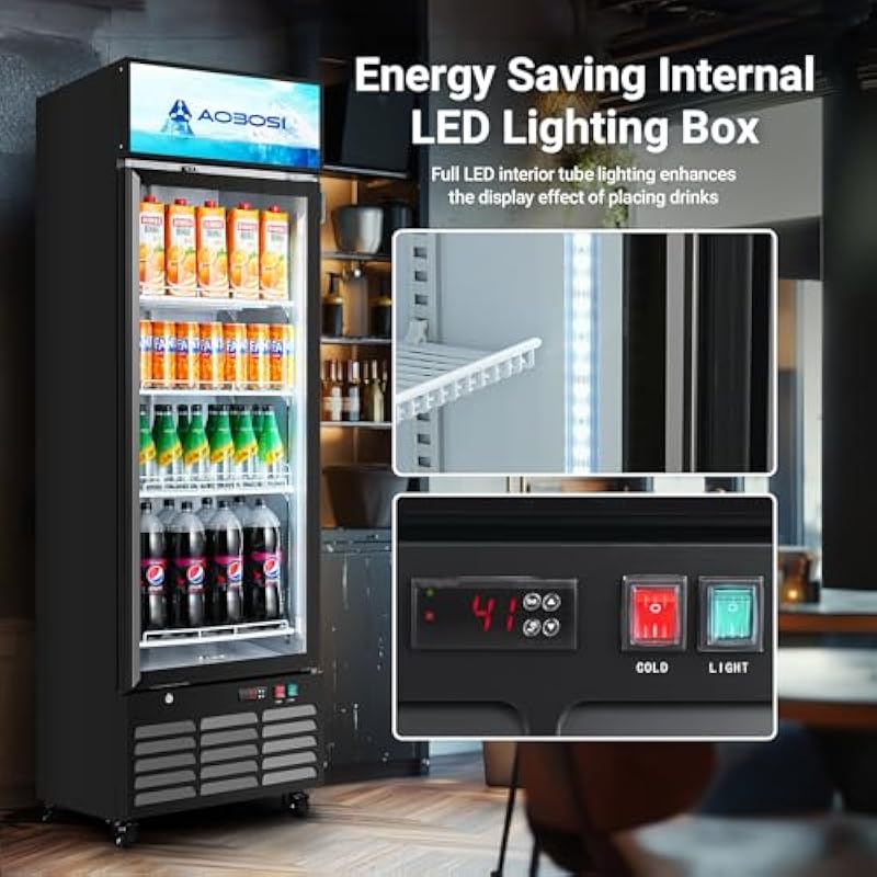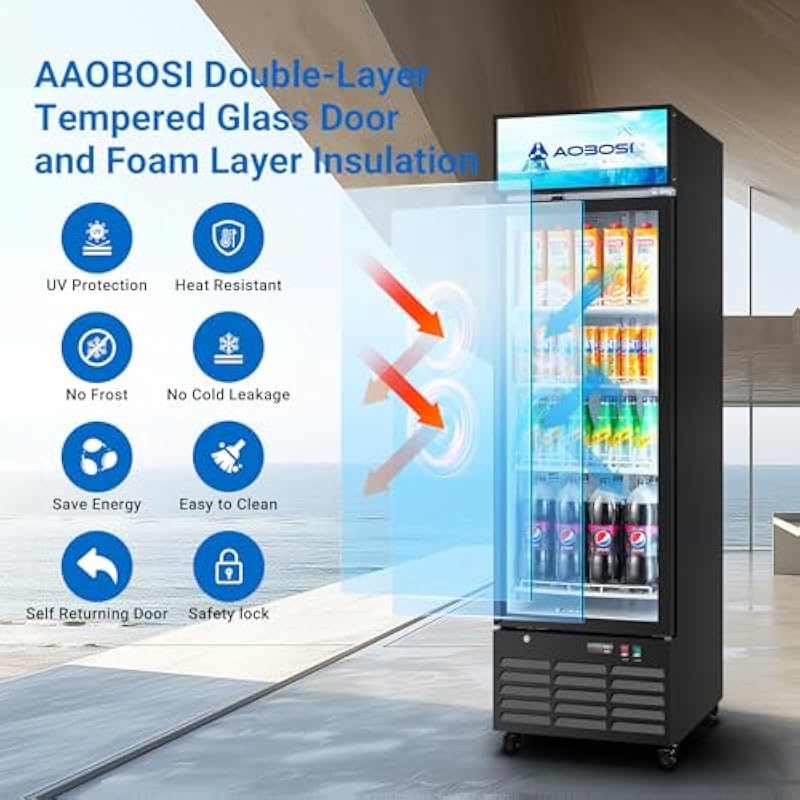 - 【Energy Saving & Multi-functional Design】AAOBOSI upright commercial display fridge helps you save on electricity costs while still providing top-notch cooling performance. The shelves are height-adjustable for easy placement of different-sized products and are equipped with safety locks to keep your merchandise secure.