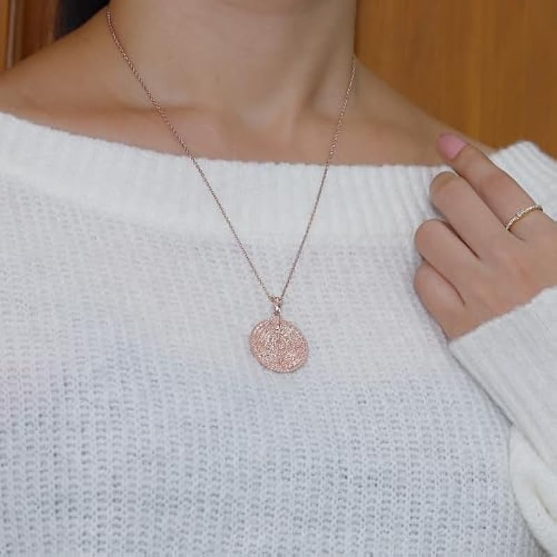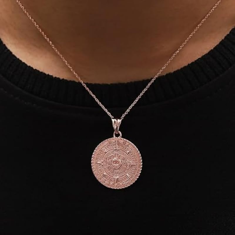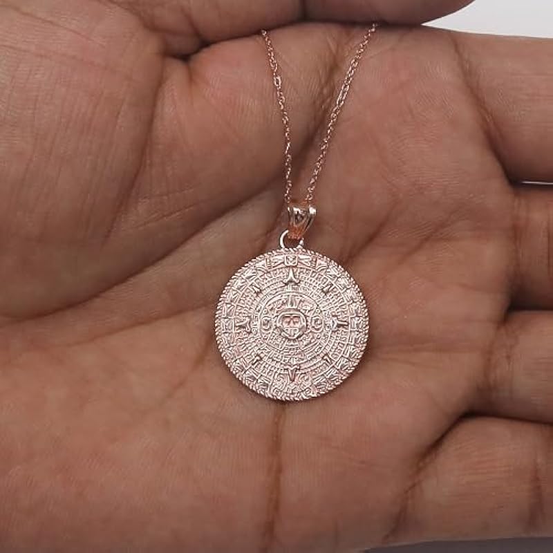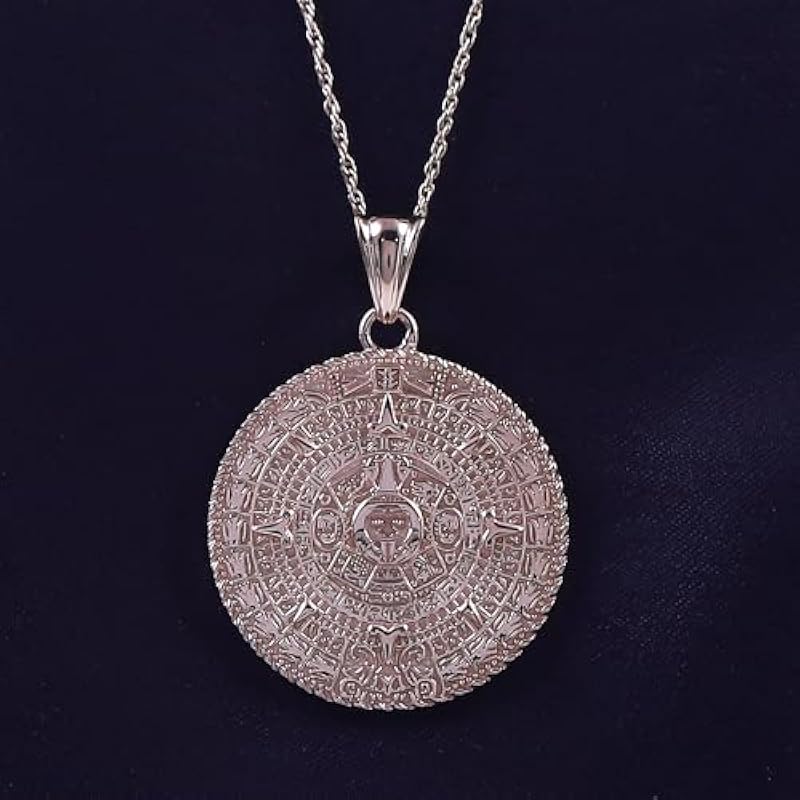 AFFY Aztec Mayan Sun Calendar Charm Pendant Necklace for Men and Women 14K Gold Plated 925 Sterling Silver Medallion Pendant Necklace with 18-Inch Rope chain