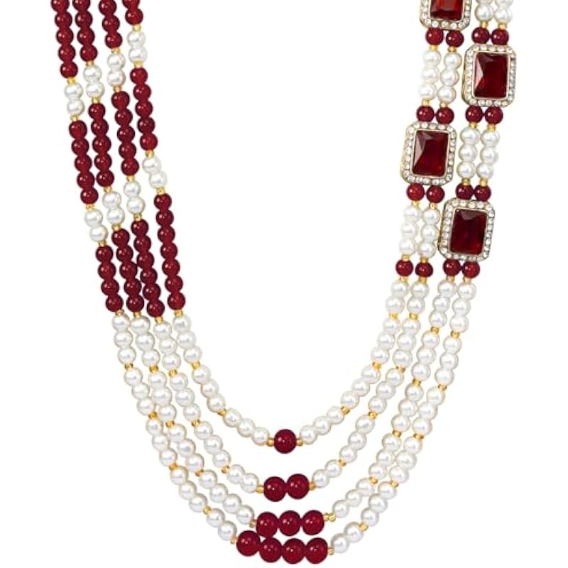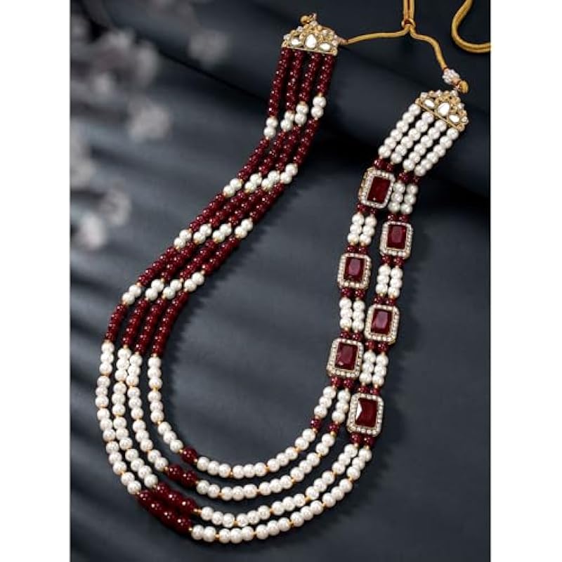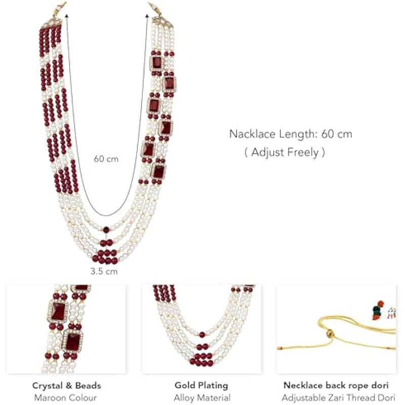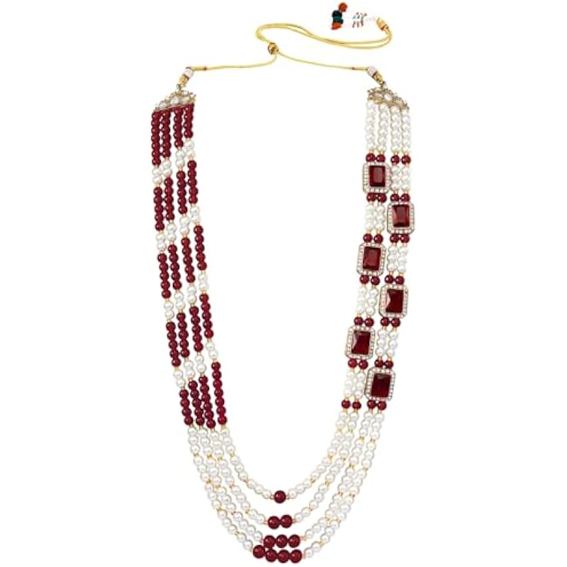 Aheli Crystal & Beads Studded Maroon White Necklace Mala Sherwani Groom’s Haar Ethnic Jewellery for Men