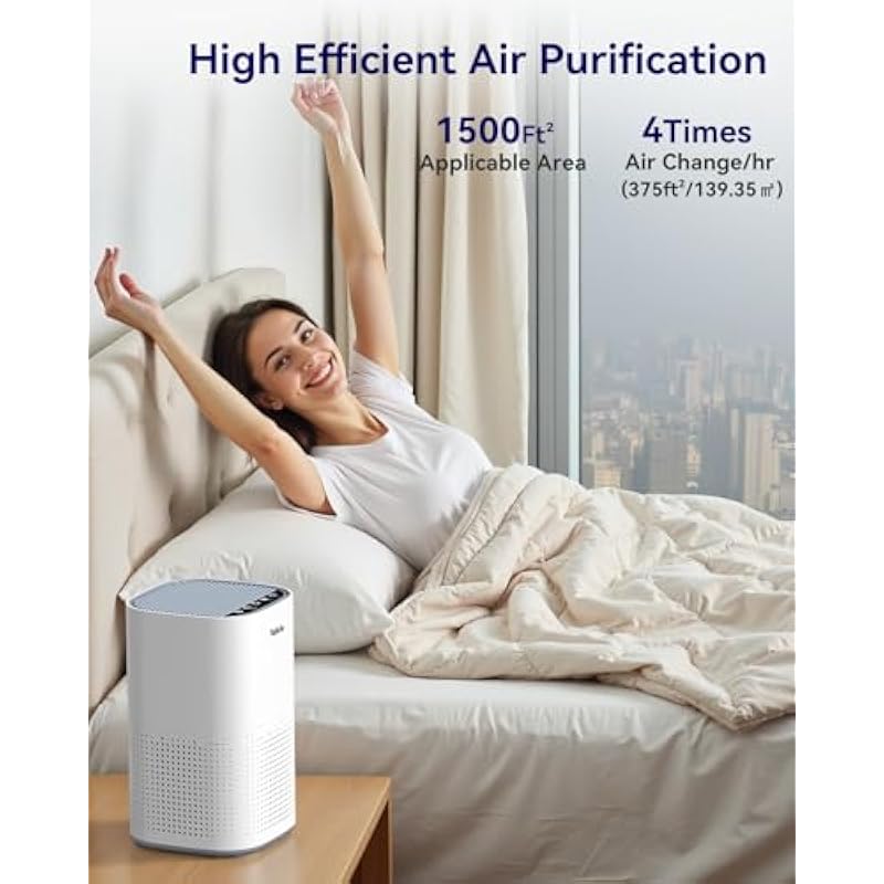 - Powerful Performance with Energy Efficiency: The HEPA air purifier is equipped with the latest 2025 optimized air duct design, a powerful motor, and a 360° air inlet. Covering up to 1500 ft², our air purifier for large room rapidly circulates and filters the air, removing dust, smoke, odors, and other harmful particles, Embrace the serenity of a purified environment and breathe easier today! With a power consumption of only 10W per hour, it is more energy-efficient while purifying the air