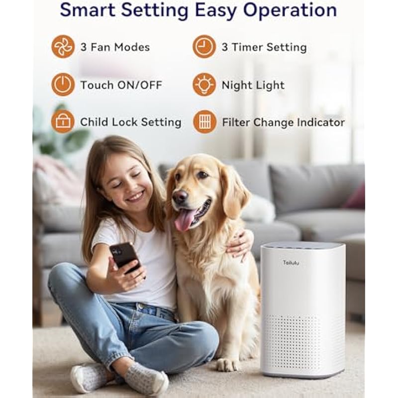 - Quality Assurance & Worry-Less Service: CARB/CE/FCC/RoHS/DOE certified and ETL listed(Available for California). Our HEPA air purifier for bedroom does not produce trace amounts of ozone and is environmentally friendly. For the best performance and longest lifespan, please purchase Tailulu official replacement filter on Amazon by searching for B0D6VP4M7Z. Tailulu filters provide the best fit and filtration, while off-brand filters may be unreliable and may damage the air purifier