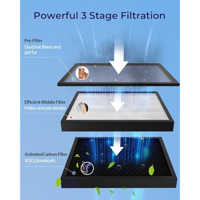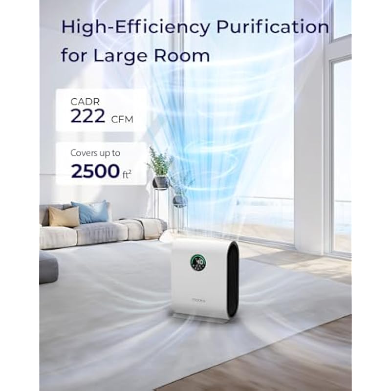 - High-Efficiency HEPA Air Purifier: Our large room air purifiers can effectively purify air pollutants and cover area up to 2500 sq ft, refresh a room of 200 ft² rapidly in just 5 minutes.It fits in different spaces like bedrooms, living rooms, offices, nurseries, basements and kitchens.Immerse yourself in a healthier, more relaxing atmosphere, right in your own home or office.
