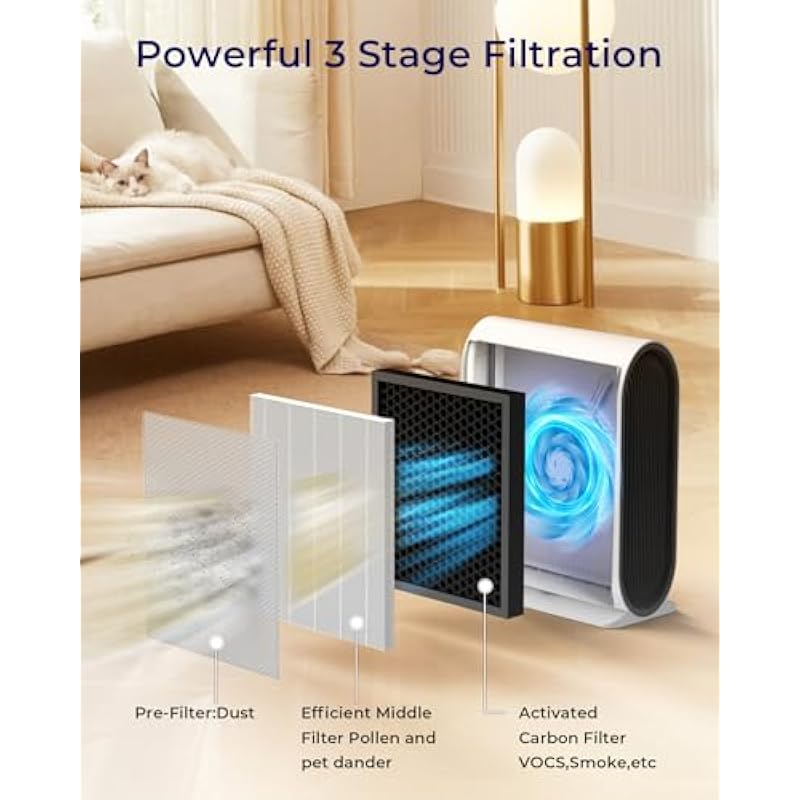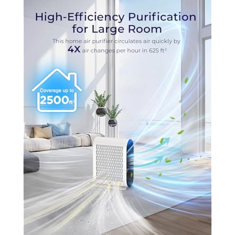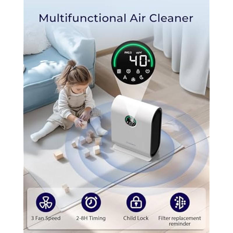 - WHISPER QUIET & MULTI-FUNCTION: This air purifiers for bedroom has 5 adjustable fan speed modes (Sleep/1/2/3/Auto), and it is very quiet with noise as low as 20dB in the sleep mode, so enjoy fresh air while sleeping sweetly. Additionally, the HEPA air purifier has a convenient timer and child lock design, ensuring optimal air quality and safety even when you’re away, and embracing the perfect clean air and energy efficiency