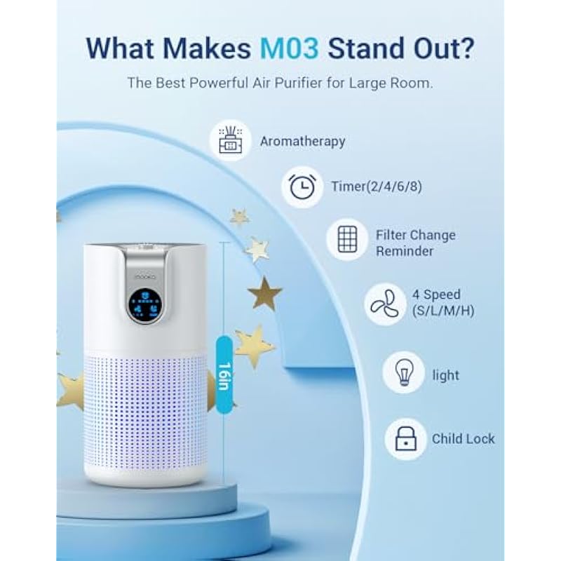 - AIR PURIFIERS LARGE ROOM: With the high-efficiency filtration system, the room air purifier covers an area up to 1095ft². This sleek design of air purifier for home fits in any space from small to large rooms, bedrooms, living rooms, offices, nurseries, kitchens and basements. Perfect air purifier for pet owners, babies, children, the elderly, or anyone wanting to improve air quality.