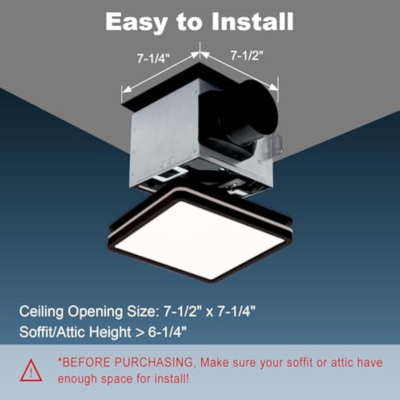 - MULTI-FUNCTIONAL LIGHTING: The bathroom exhaust fan offers adjustable color temperature of 2700K/4000K/5500K, allowing you to customize your sapce according to your preference. The night light on the side emits a soft glow, helping you find your way in the dark