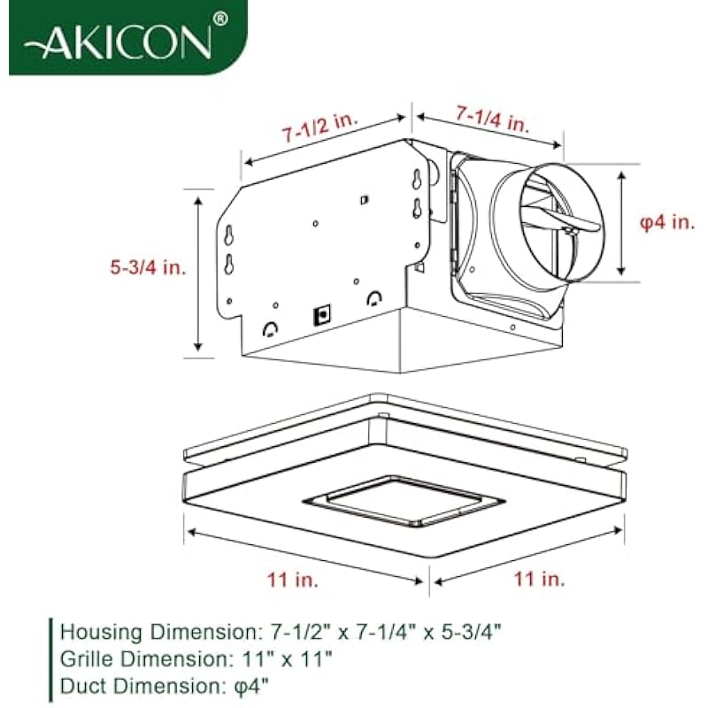 - HIGH QUALITY & PERFORMANCE: Be confident in the quality and construction of our products. The bathroom fan light combo is ETL, HVI Listed and Energy Star Certified. All Akicon products come with a best-in-class customer service team to make your shopping experience smooth and comfortable. 3-Year Limited Guarantee