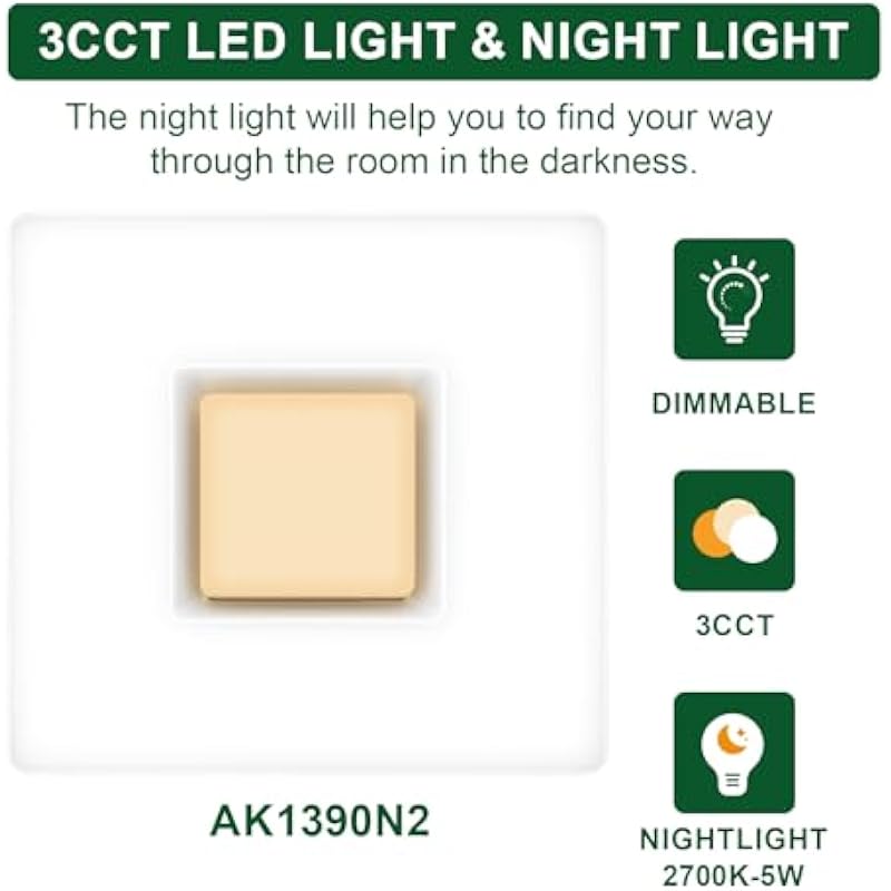 - 3CCT LED LIGHT WITH NIGHT LIGHT: The bathroom vent fan with light can be customized your experience by choosing the color temperature in 3 options (2700K, 4000K, 5500K). And the 5W 2700K night light will help you to find your way through the room in the darkness