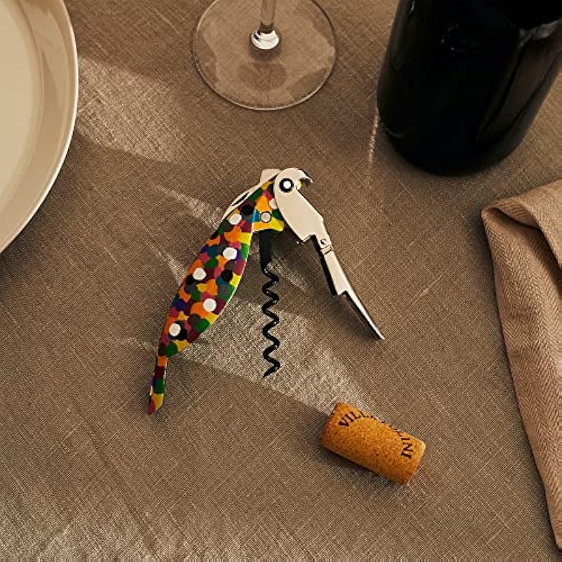 Alessi AAM32 1 Parrot – Sommelier Design Corkscrew, Cast Aluminum and PC, Molticolor
