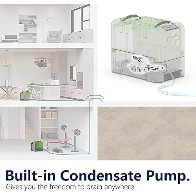 - Dehumidifier with Pump for Easy Drainage: This commercial dehumidifier with pump will automatically drain the condensate out for the low-hassle operation. Plus, the 19.6 ft long drain hose and 14.7 ft drain vertical height maximize the flexibility of installation.