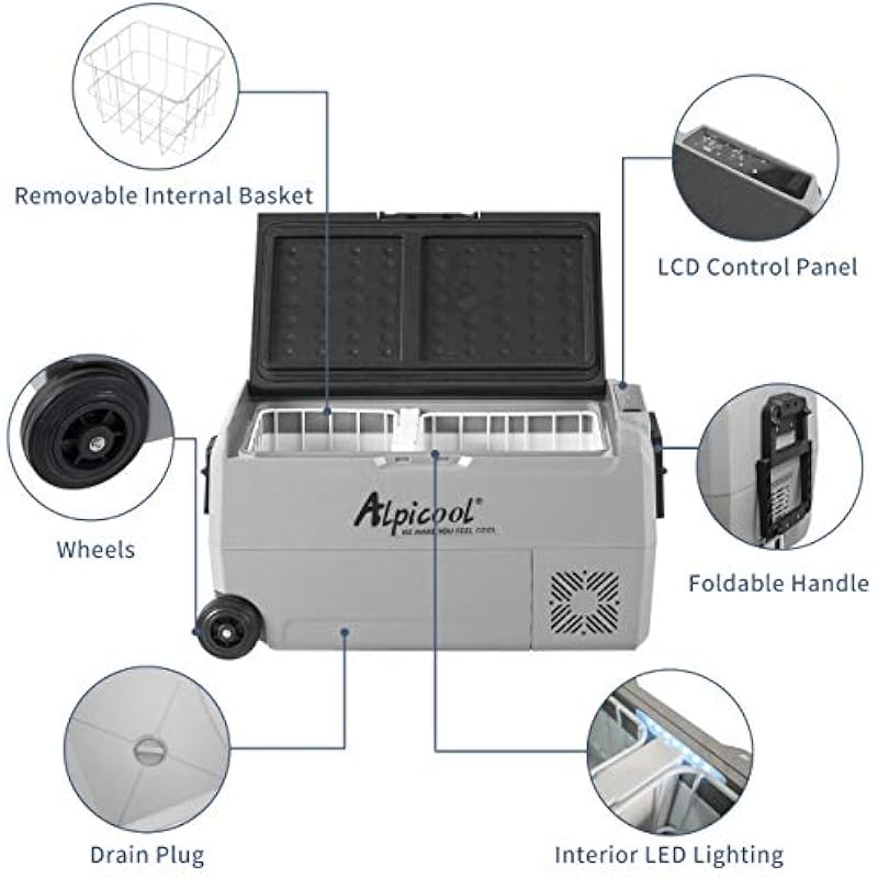 Alpicool T36 Dual Temperature Control 12 Volt Refrigerator 38 Quart Portable Car Fridge Freezer (-4°F~68°F) for Truck, RV, Boat, Camping and Travel