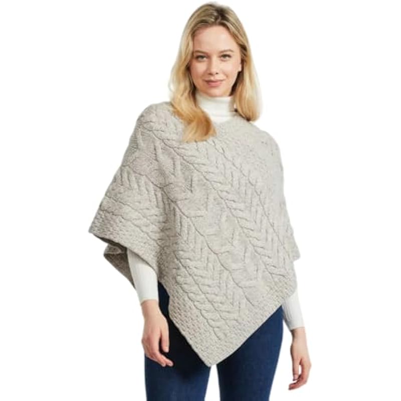 Aran Woollen Mills Women’s Irish Cable Knit Poncho, 100% Supersoft Merino Wool, Made in Ireland, One Size, Aasleagh Falls