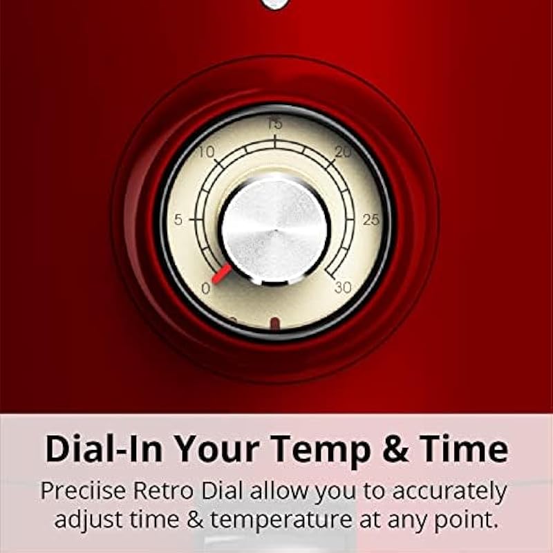 Aria Air Fryers 2Qt Retro Style Ceramic Build, Small Compact Size Airfryer, Easy Clean & Dishwasher Safe, Ceramic Nonstick Teflon Free Small Convection, Red/Black Trim & Basket Handle