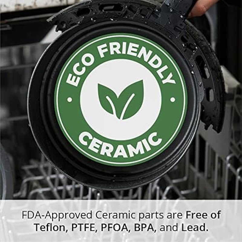 - NON-TOXIC AND SAFE DESIGN: The ceramic, dishwasher safe basket and crisping rack of this air fryer are PTFE-free, PFOA-free, and BPA-free, and the non toxic air fryer, teflon free construction provides excellent heat conduction, ensuring safety and easy cleaning.