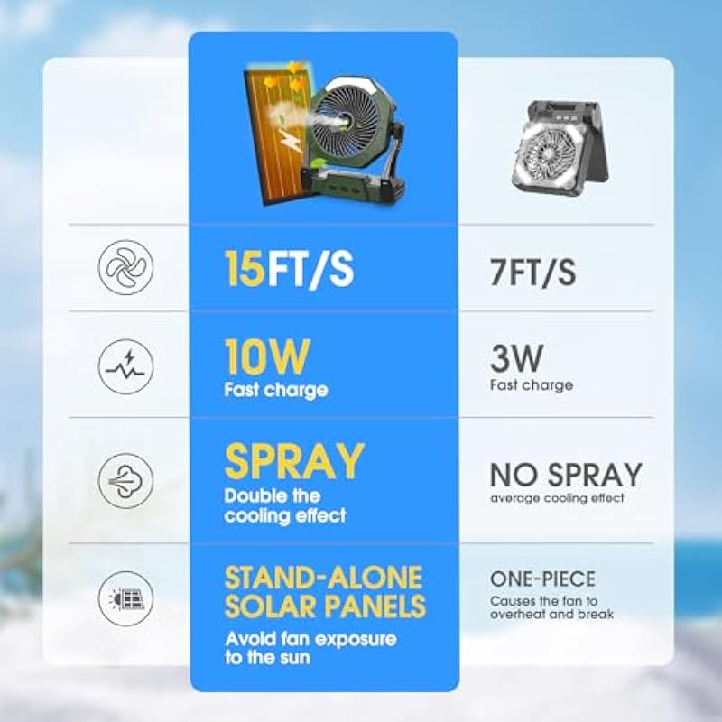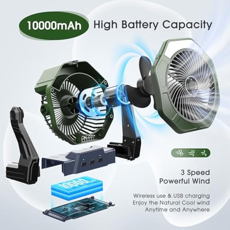 - 🎁【Best Gift for Summer】Rechargeable fan is made of sturdy ABS material, prevent violent impact, so you can confidently use it on various occasions, such home, patios, beach, garage, exercise, chicken coop and ect. Also, our personal fan is a great gift for your friend and family with fine package .