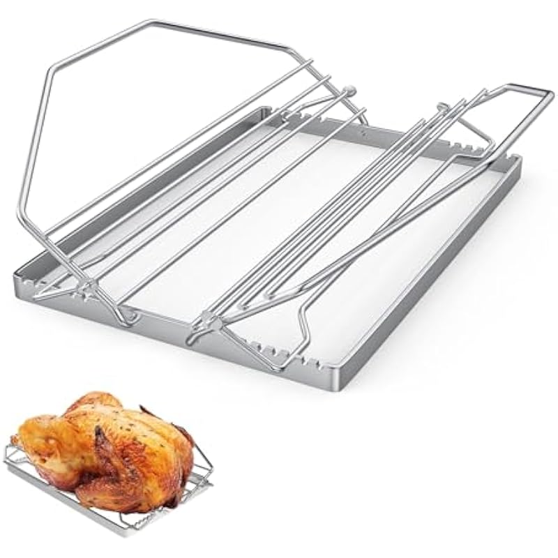 - 7-Position V-shaped Roast Rack: This roasting rack has a foldable and V-shaped design with seven adjustable positions. It can easily accommodate roasts, poultry, and meats of various sizes, ensuring flawless heat circulation and perfect cooking every time.