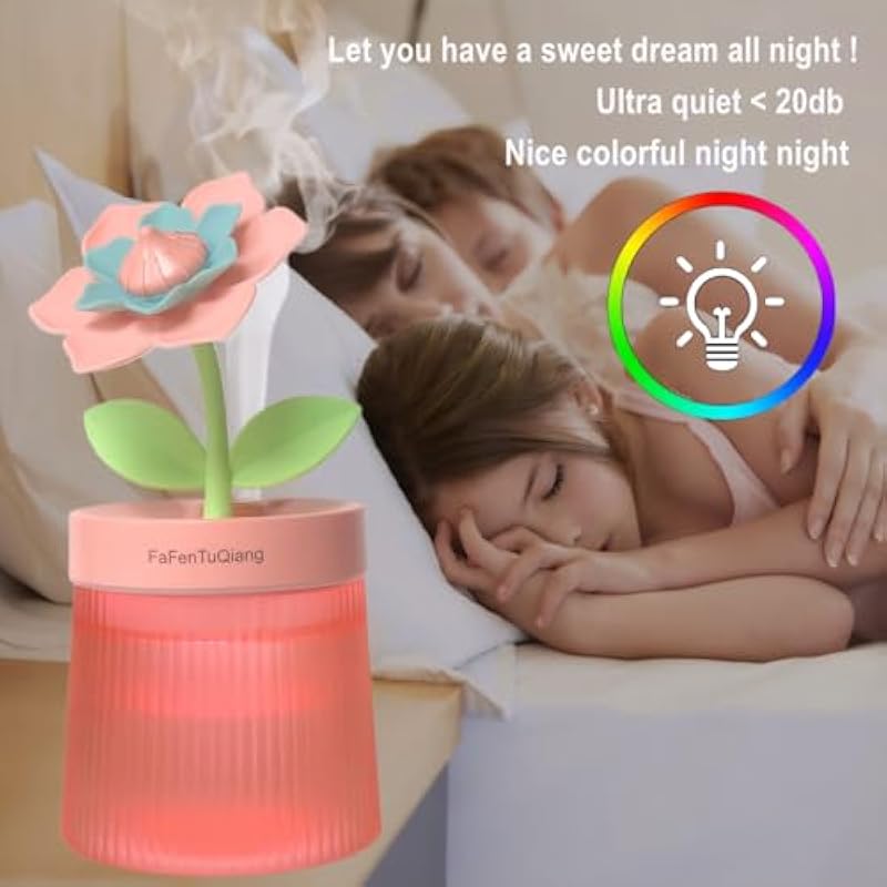 Bedroom Mini Humidifier Cute, Auto Shut Off 260ml With Flower, Cool Mist, 7 Colors Night Light, Quiet, Portable Ultrasonic Essential Oil Diffuser for Plants Office Travel