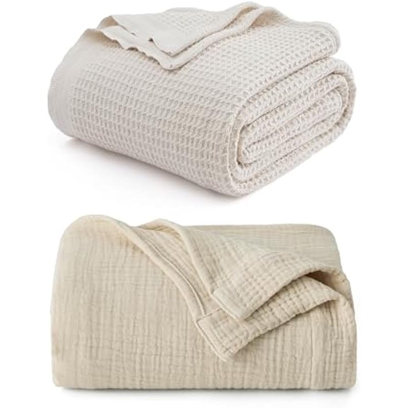 - Bedsure Bundle of 1 Muslin Blanket Queen & 1 Cotton Waffle Blanket King
