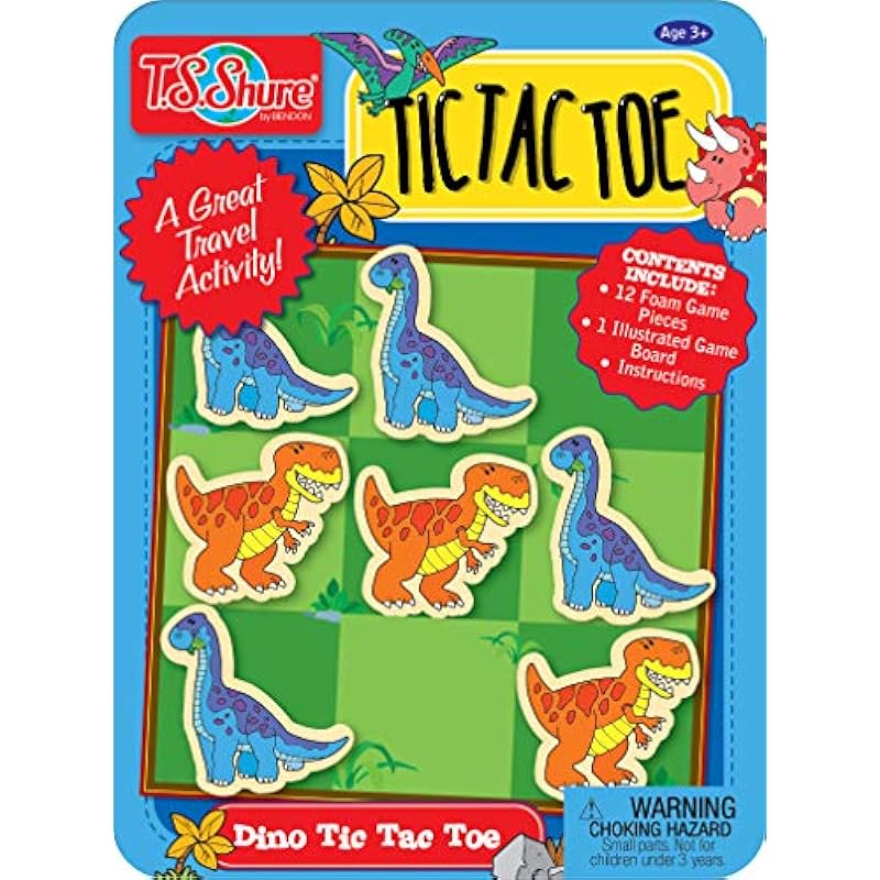Bendon TS Shure Dinosaur Tic-Tac-Toe Games Mini Magnetic Activity Tin with Illustrated Foam Magnets 50515