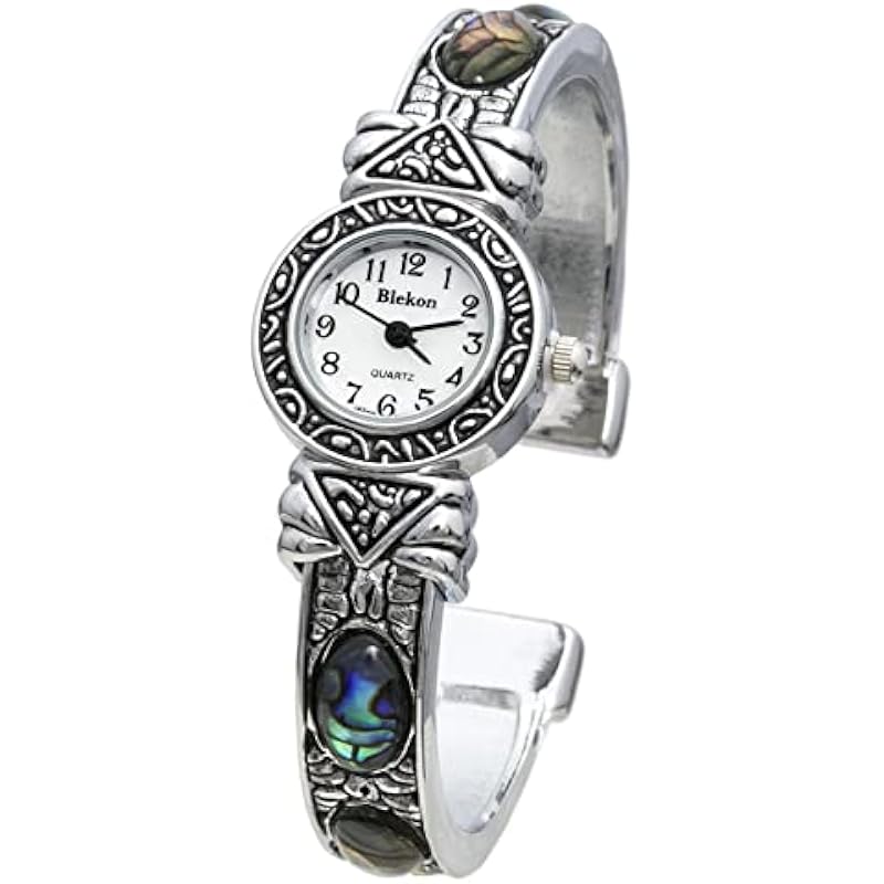 Blekon Stone Studded Watch for Women, 22mm Case Japanese Quartz Movement and Large Cuff Bangle, Best Fits Wrists Measuring 7-8 inches