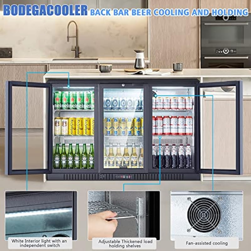 - ✅[Automatic Defogging System] BODEGACOOLER 3 doors Commercial bar display fridge with a high definition double-layer Tempered glass door design,which provides better heat preservation and durability compared to traditional display bar fridge with a ordinary single-layer glass door. Also, this display beverage fridge with a built-in automatic defogging system that automatically removes fog from the glass every 6 hours, keeping the glass door of the display cabinet always clear!