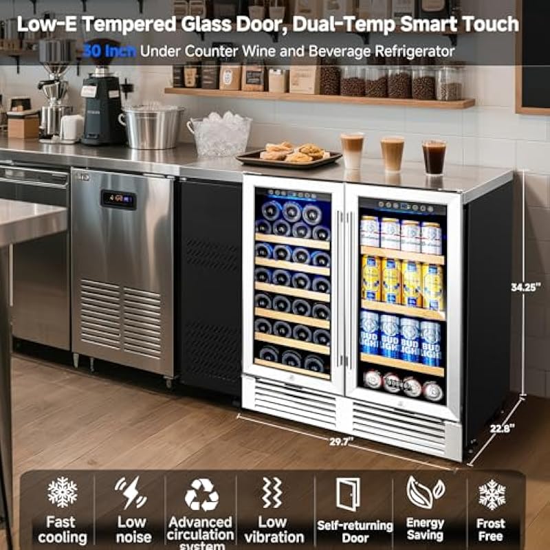 - 🍷【30 Inch Commercial Back Bar Cooler】BODEGACOOLER back bar cooler ( 35.6 °F to 68 °F) is perfect for commercial bar fridge under counter use,intelligent thermostat will maintain the interior at the ideal temperature.Under-counter for nightclubs,pub,home kitchen,perfect display fridge with interior lights make beverage attracted to your customer and can be used for display refrigerator like club party drinking,watching soccer race,home friends meeting dinner,etc. This 2-doors back bar refrigerator size 22.8″(D) x 29.7″(W) x 34.2″(H).