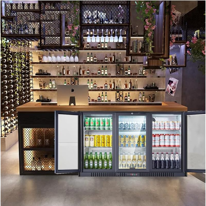 BODEGACOOLER Commercial Bar Cooler With 3 Glass Doors,11.4 Cu.Ft Under Counter Beverage Refrigerator,Back Bar Refrigerator,Commercial Display Drink Fridge,LED Lighting Beer Wine Soda Drinks