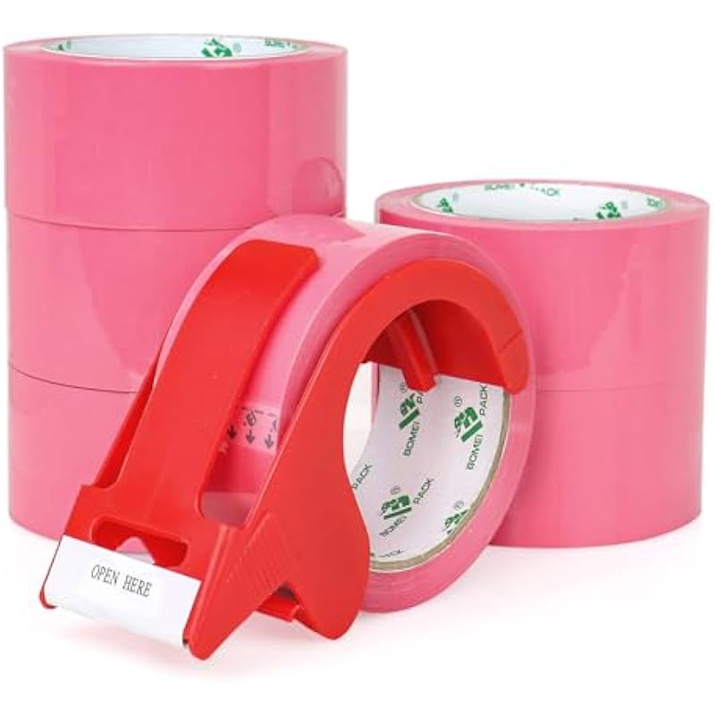 - ✔HEAVY DUTY: Pink packaging tape thickness is 2.6mil, thick enough. With strong adhesive BOMEI packing pink tape with dispenser is perfect for heavy goods packing, sealing and shipping.