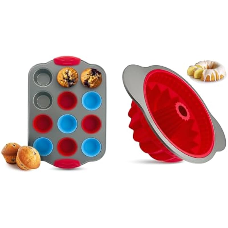 - [ULTIMATE BAKING COMBO] – Featuring a 12 cup mini muffin pan with silicone liners and a durable fluted pound cake pan, this set ensures you’re ready for any baking challenge.