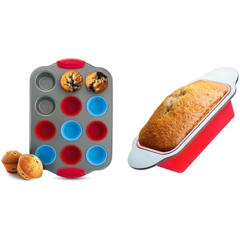 - [COMPLETE BAKING SET] – Enhance your kitchen collection with this combo – a 12 cup mini muffin pan with silicone liners and a 9×5 inch silicone bread loaf pan. Perfect for muffins, cupcakes, breads, meatloafs, and more.