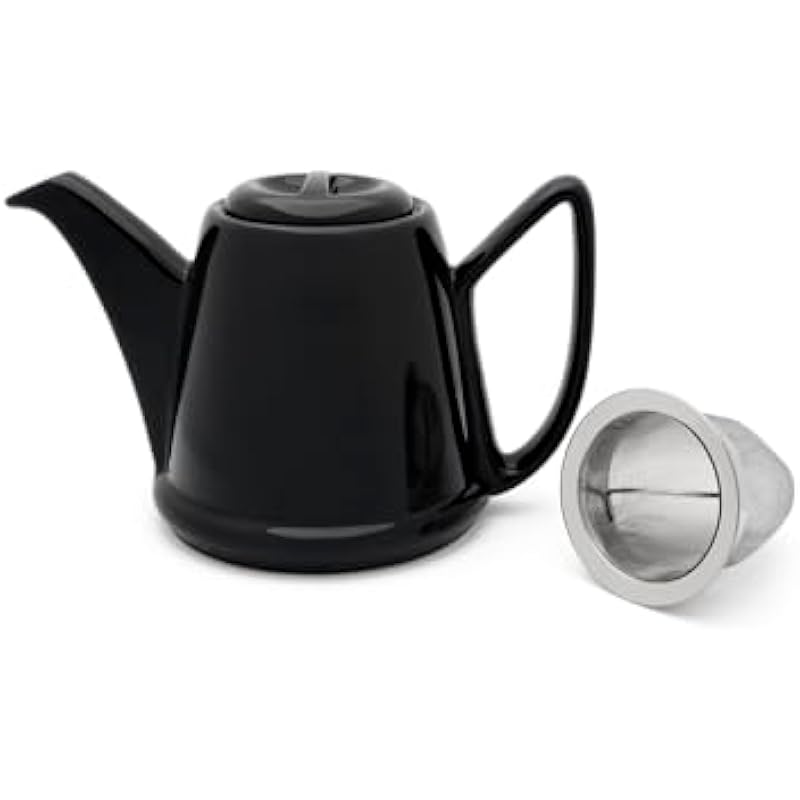 Bredemeijer Small Black Ceramic Teapot 1.0 Litre Stoneware – Insulating Ceramic Jug with Stainless Steel Tea Filter