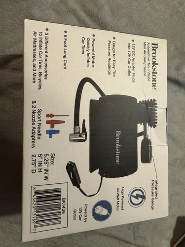 Brookstone Automotive Tire Inflator Air Compressor 300 PSI 12V Car Outlet NEW