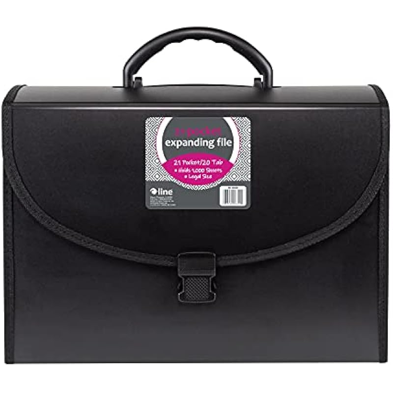 C-Line 21-Pocket Poly Expanding File with Handle, Includes Tabs, Locking Closure, Legal Size, Black (58320), Traditional