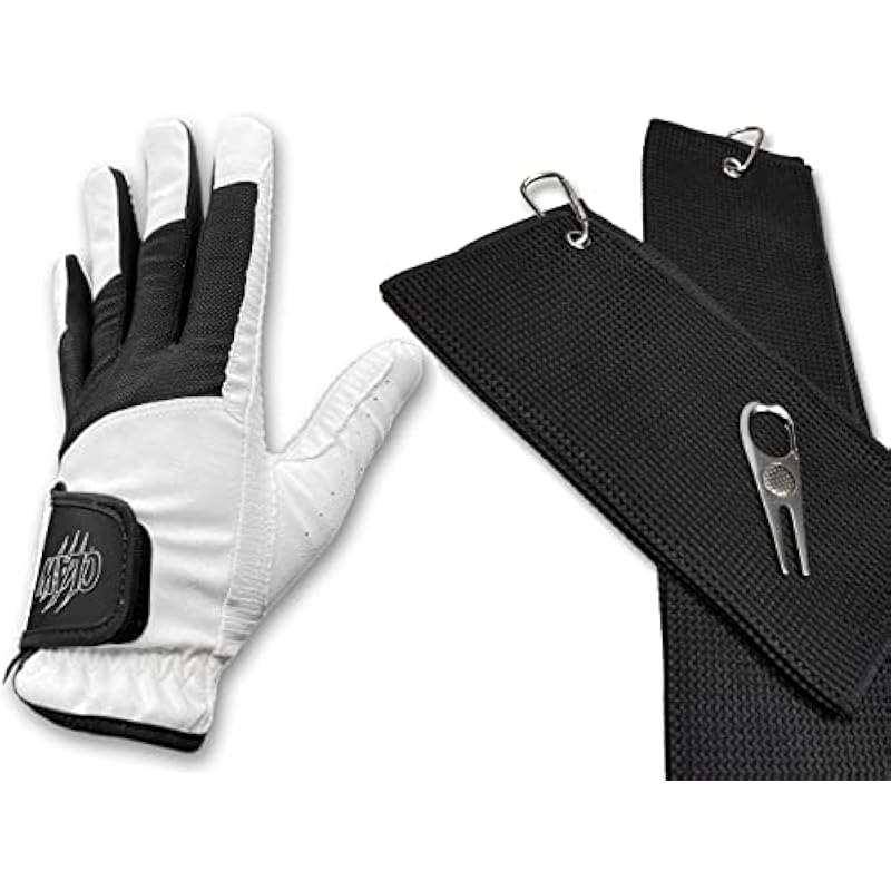 CaddyDaddy Claw Max Golf Glove for Men with Microfiber Towel Set & Divot Tool