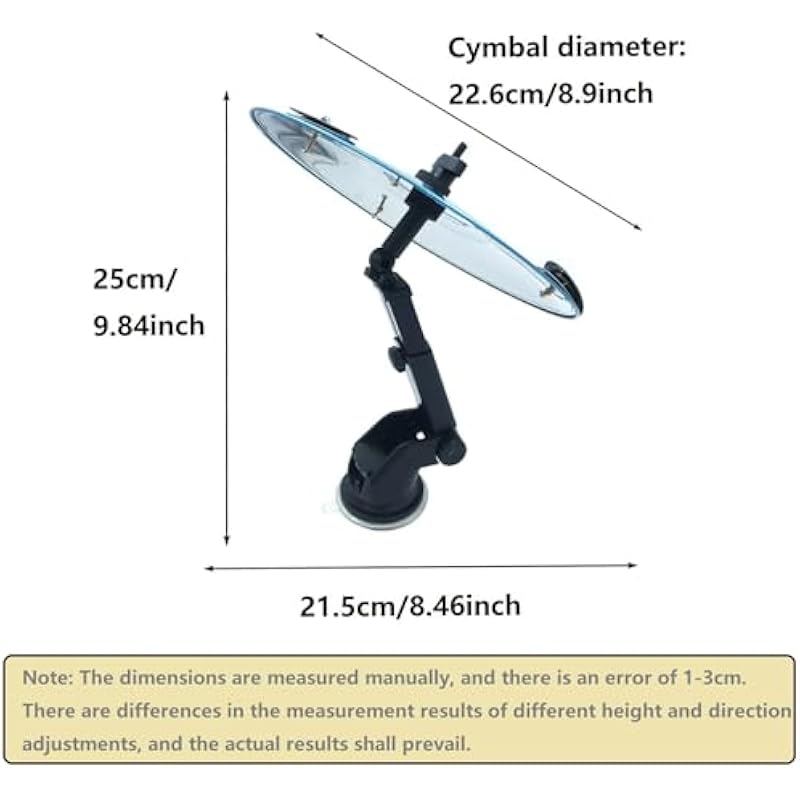 - Size: Cymbal diameter: 22.6cm/8.9inch; Overall size (Highest): approximately 21.5×22.6x25cm/8.46*8.9*9.84inch.