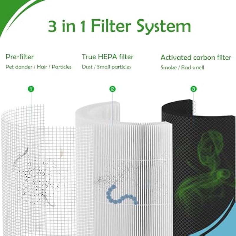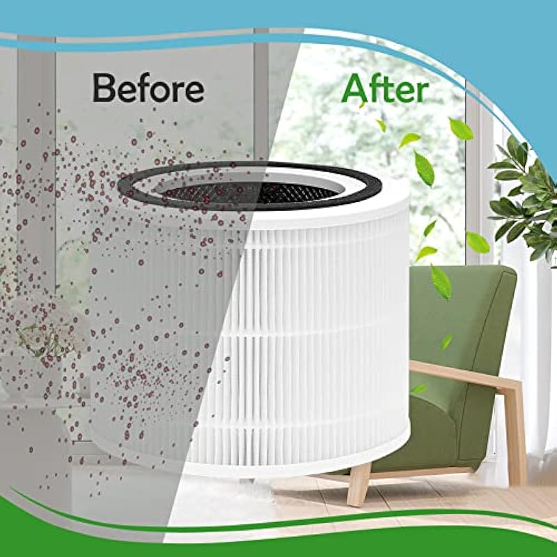 - 【H13 Grade True HEPA】High-quality HEPA filter filters 99.97% of airborne particles. The activated carbon layer is designed to filter unwanted gases caused by smoke, smog, food, pets, and more.