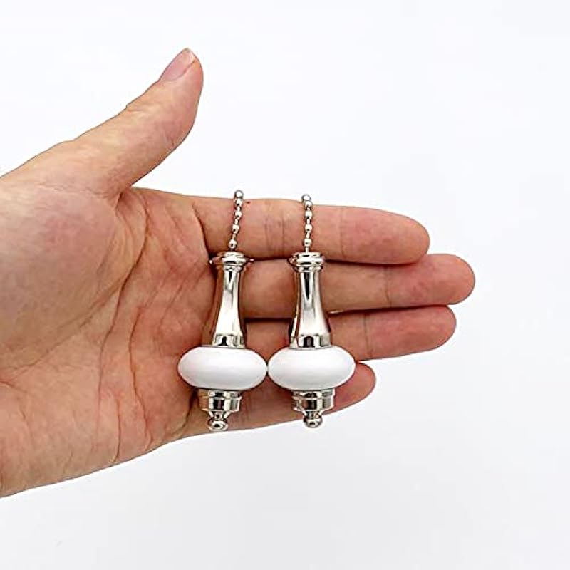 Ceramic Ceiling Fan Pull Chain Set, 2pcs White Decorative Pendant Extension, 12 Inches Lighting & Beaded Ball Cord Extender Ornament With Connector