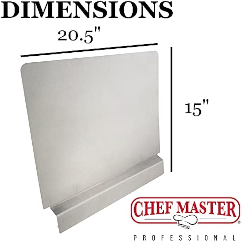 - DIMENSIONS – The Chef Master 90059 Fryer Splash Guard measures 20.5 by 15 inches. This is just the right size to fit on almost any common commercial deep fryer.