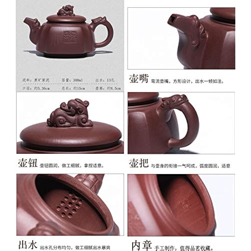- Design:Dragon head spout and handle,The mythical wild animal pot button.13 hole filter, not easy to block the outlet, the water, such as column, with smooth tension.Small capacity design, suitable for one or two people drinking; Limited production of manual, clear seal, with collection value.The pot is small and beautiful; The pot is equipped with safety rope, connecting the handle and lid to prevent the lid from falling and breaking,