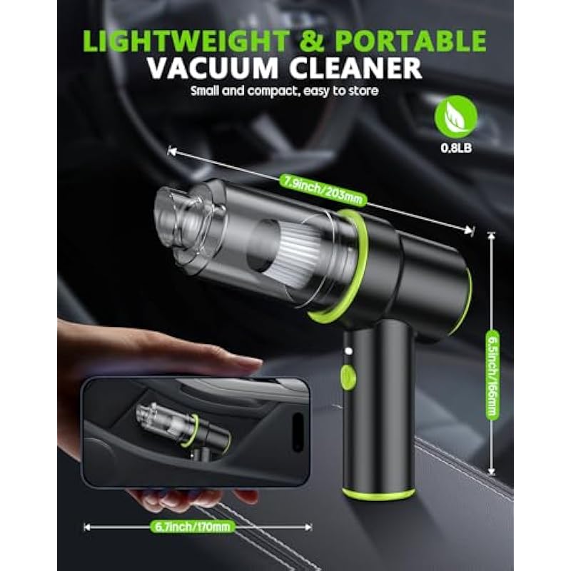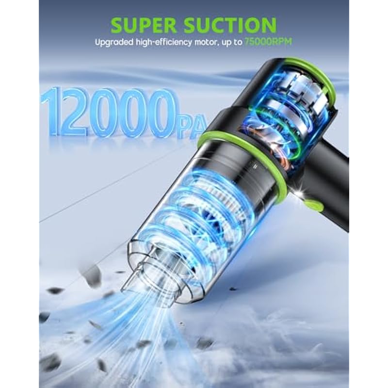 - 【12000PA POWERFUL SUCTION VACUUM CLEANER】The car vacuum cleaner is equipped with a powerful motor with a speed of 75000RPM and a suction of up to 12000PA for deep and efficient cleaning, allowing you to effortlessly deal with stray hair and impurities. This hand held vacuum cleaner is ideal for in-car and everyday home use