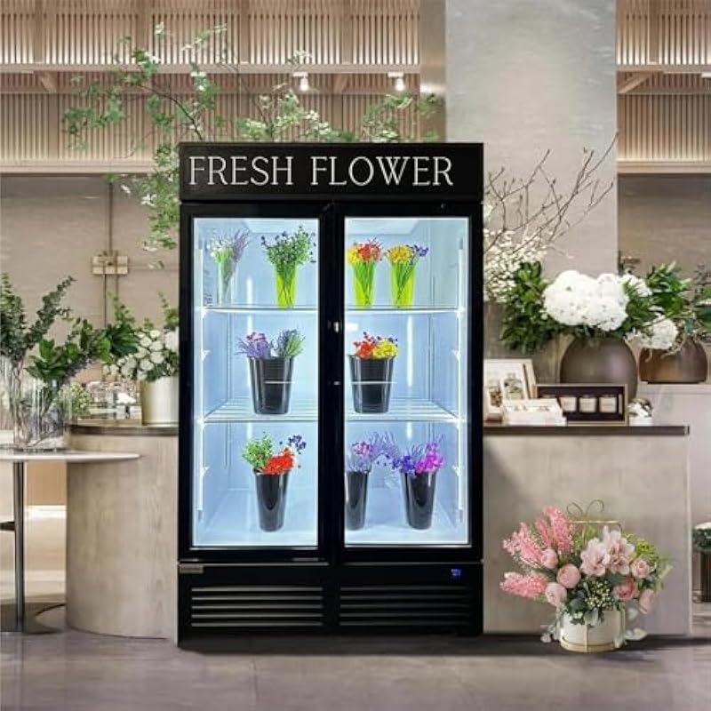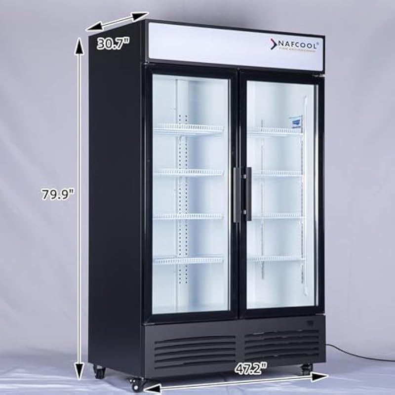 Commercial Beverage Refrigerator Display Fridge,Two Glass Door Drink Cooler with LED Light Adjustable Shelves,ETL Sanitation,43 Cu Ft,47″ Wide,Wheels Not Included