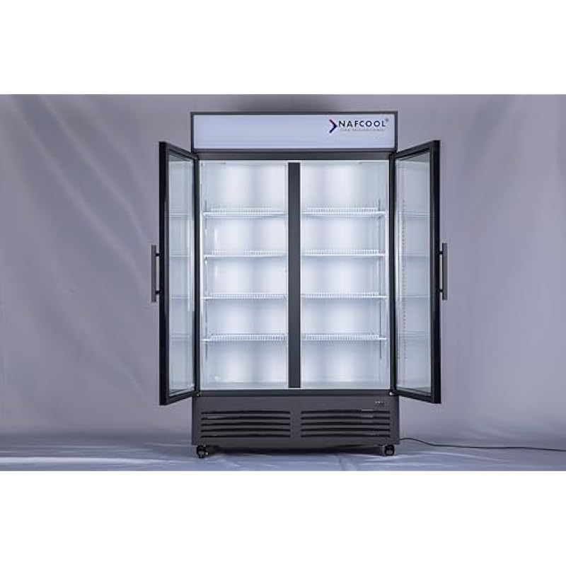 - The double door merchandiser utilizes environmentally friendly R290 refrigerant and designed with energy efficient components with ECM fan motor. This item meets the sanitation standards imposed by the ETL, a division of the Intertek Group. Note: Refrigerator working ambient: below 70°F and 55% humidity and No Humidity Control.