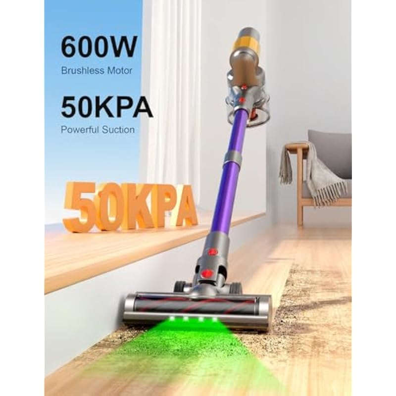 - 50Kpa Powerful Suction: Dominate stubborn debris with industrial-strength 50kPa suction. Our brushless motor delivers 3 adjustable modes—effortlessly switch between hardwood floors (gentle 18kPa), carpets (28kPa), and Turbo for ground-in messes. Cleans floors, sofas, car interiors, and furniture gaps with precision. An extra replacement HEPA is included in the package (2 total).
