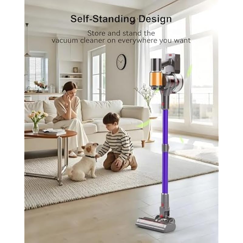 - Self-Standing Feature: Take a quick call, move furniture, or just grab a coffee – our unique self-standing design means your vacuum stays upright whenever you pause. No bending to prop it up! Designed for effortless, one-handed maneuverability and surprisingly light to carry. The massive 1.5L dustbin means fewer trips to empty, and multiple included accessories handle any surface from drapes to car seats.