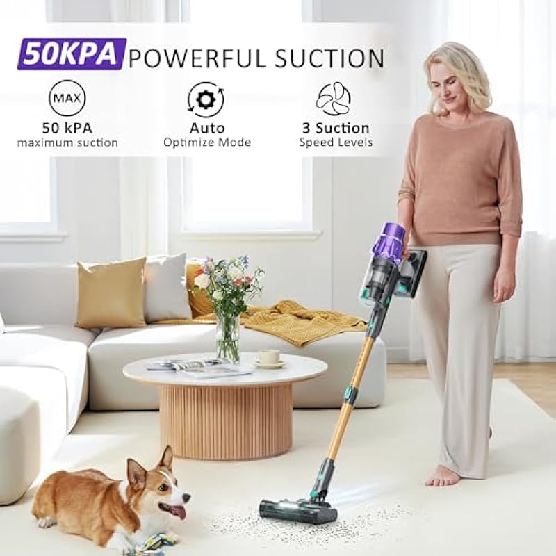 | Special Feature | Latest brushless motor➤50Kpa suction power➤Max 70 mins runtime➤Self-standing design➤1.5 litre dust container➤99.99% high efficiency filtration➤LED touch screen➤V-shaped anti-tangle brush➤Wall-mounted charging➤Low noise➤Excellent customer service support and 2 years return and exchange service. |