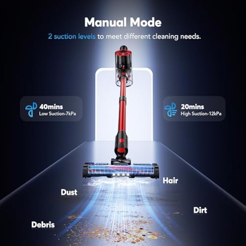 | Special Feature | 40 minutes of battery time; 80,000PRM upgraded motor; Upgraded anti-tangling brush; 0.5L large dust cup, a key to empty; 5 layers of precision filtration system; 12000Pa suction; A variety of accessories for a variety of use of scenes; 2600mAh removable battery, 3 charging ways |