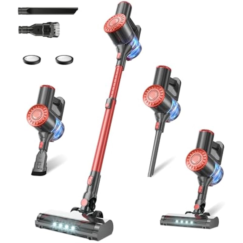 - 【Lightweight Design for Easy Handling】This stick vacuum cordless is ultra-light and balanced making it easy to carry and use throughout your home. Its ergonomic handle lets you clean overhead areas like shelves and corners without strain.Perfect for one-handed operation, cordless stick vacuum’s ideal for quick cleanups. Despite vacuum cleaner cordless’s light weight, it’s durable and easy to control, making cleaning a breeze.