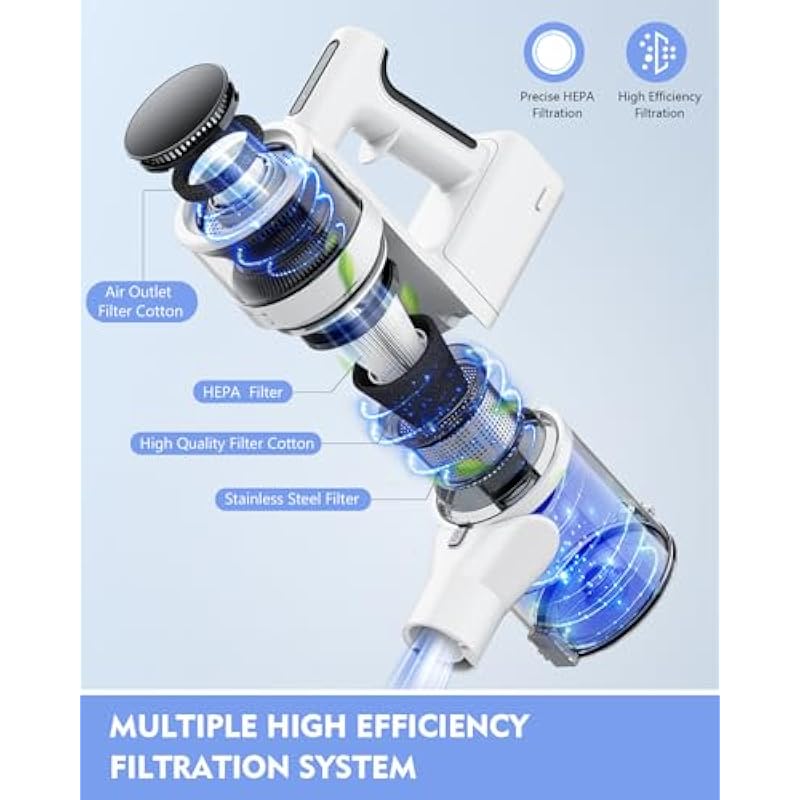 - Easy Maintenance with Washable: Cordless vacuums for home include washable filters and a dust cup that can be easily detachable to clean. Simply rinse and dry for reuse, maintaining better performance for your stick vacuum.